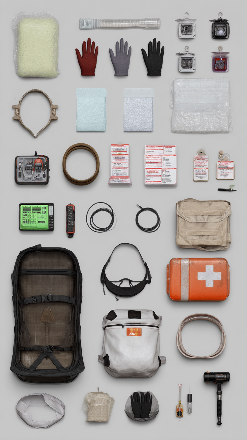 Trauma kit (dressings, splints, IV lines, emergency meds)